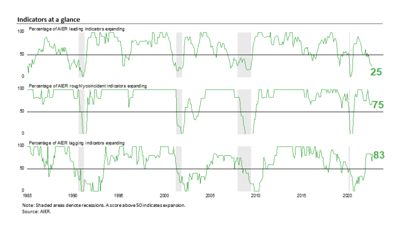 The post AIER Leading Indicators Index Remains Well Below Neutral was first published by the American Institute for Economic Research (AIER), and is republished here with permission. Please support their efforts.