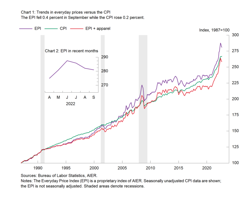 The post AIER’s Everyday Price Index Falls for the Third Consecutive Month in September was first published by the American Institute for Economic Research (AIER), and is republished here with permission. Please support their efforts.