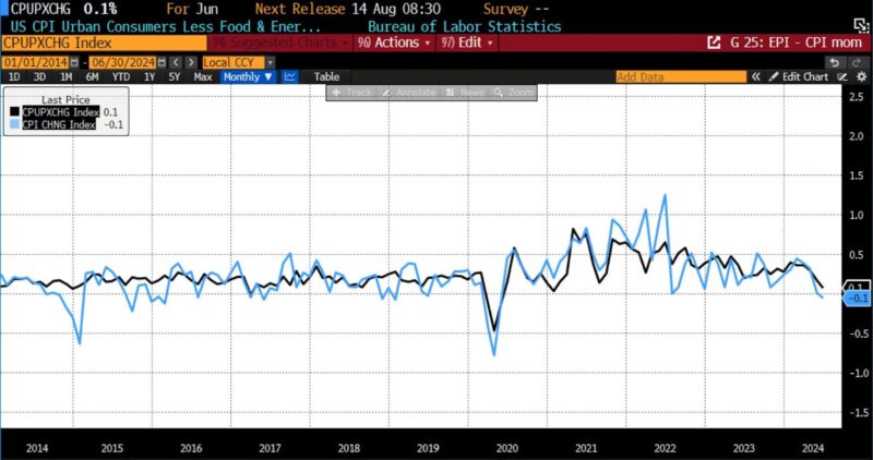 June 2024 US CPI headline & core month-over-month (2014 – present)