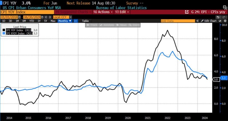 June 2024 US CPI headline & core year-over-year (2014 – present)
