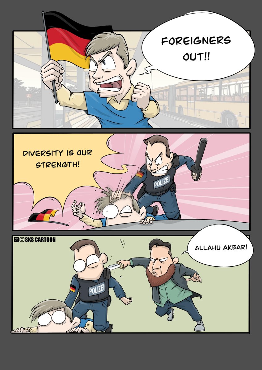 This cartoon was first published by SKS Cartoon. Please follow and subscribe on Twitter and Instagram.Europe has fallen
