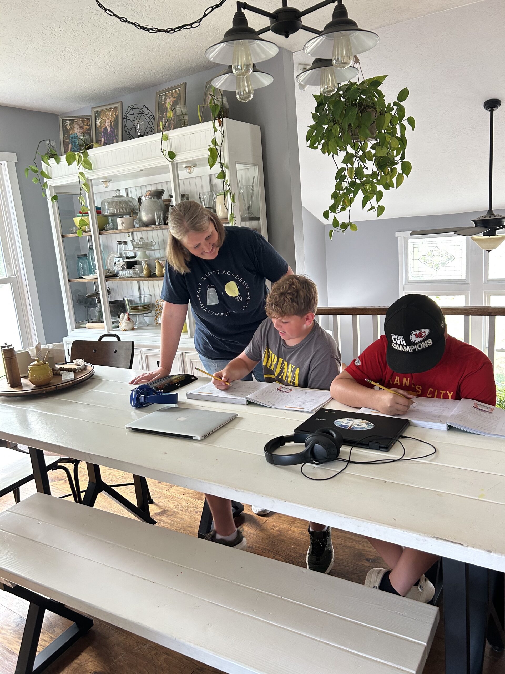 Jennifer Hunt works with students at Salt + Light Academy in Kansas. Photo: Kerry McDonald