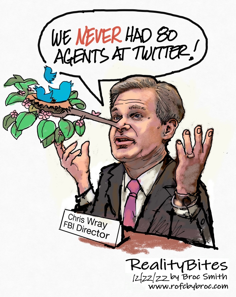 HomeCartoonsMore from the FBICartoonsMore from the FBIBroc Smith December 23, 2022 87 11 278Broc Smith, https://rofcbybroc.com46SharesFacebook24Twitter12Pinterest3Email3Reddit1Tumblr1WhatsApp2Viber More from the FBI was first published by Broc Smith, and is republished here with his generous permission. Please support his exceptional work. Broc Smith Designer by trade, theme parks and resorts (China 22 years), now drawing political cartoons at https://rofcbybroc.com to support his family. Related PostsCartoonsTwo Too ManyCartoonsTrump Pushes the Ivory TowerCartoonsExpunged BathPreviousNext1 of 642Leave A Reply Cancel ReplyYour email address will not be published. Required fields are marked *Comment *Name * Email * Save my name, email, and website in this browser for the next time I comment.