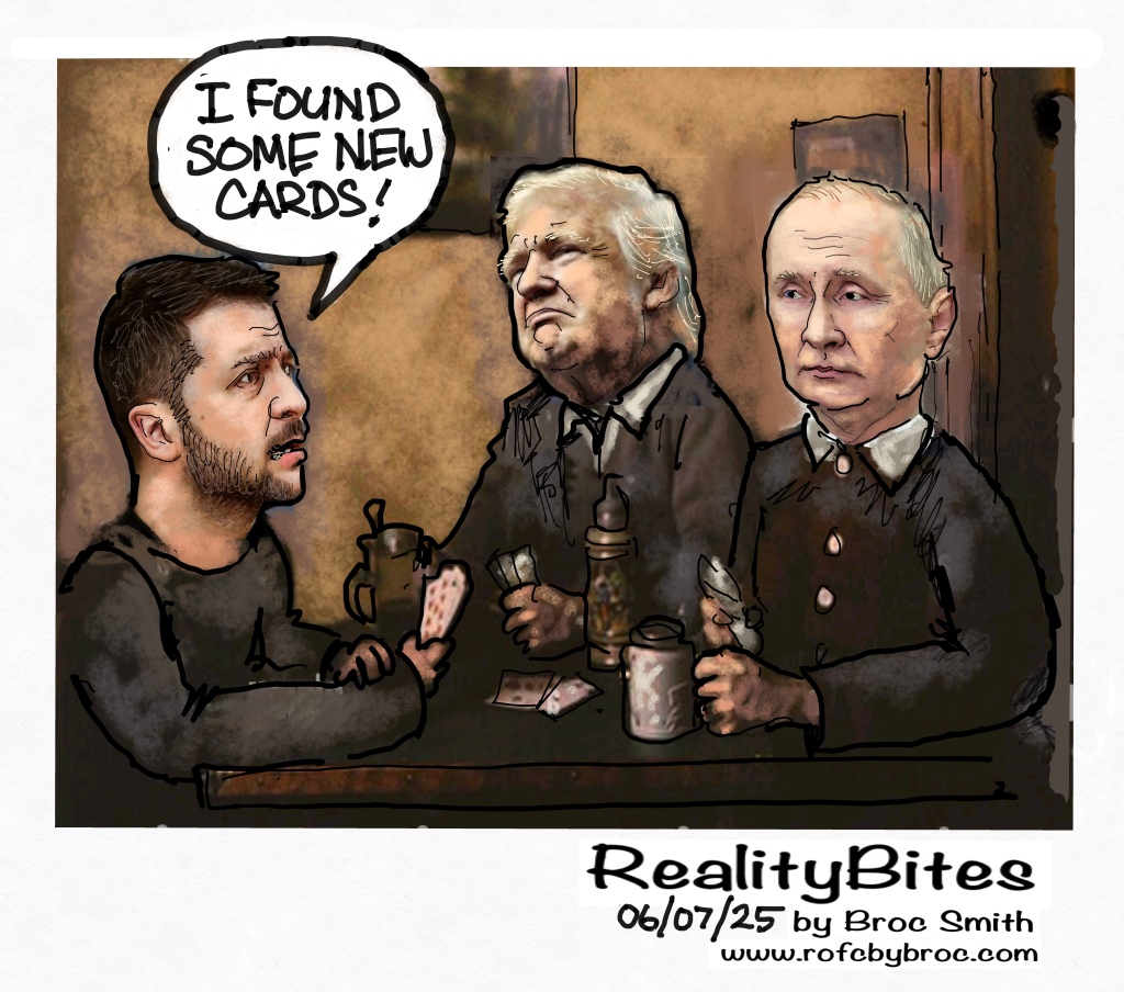HomeCartoonsOk, We’re Playing Cards ThenCartoonsOk, We’re Playing Cards ThenBroc Smith June 5, 2025 86 11 271Broc Smith, https://rofcbybroc.com44SharesFacebook23Twitter12Pinterest3Email2Reddit1Tumblr1WhatsApp2Viber Ok, We’re Playing Cards Then was first published by Broc Smith, and is republished here with his generous permission. Please support his exceptional work. Broc Smith Designer by trade, theme parks and resorts (China 22 years), now drawing political cartoons at https://rofcbybroc.com to support his family. Related PostsCartoonsTwo Too ManyCartoons#TaylorSwiftCartoonsBranco Cartoon – Fire and I.C.E.PreviousNext1 of 651Leave A Reply Cancel ReplyYour email address will not be published. Required fields are marked *Comment *Name * Email * Save my name, email, and website in this browser for the next time I comment.