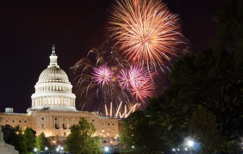 New Year’s Eve fireworks above the US Capitol Building, Washington DC. 2016.