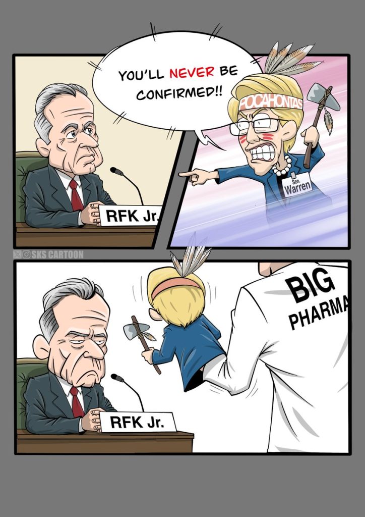 This cartoon was first published by SKS Cartoon. Please follow and subscribe on Twitter and Instagram.RT by @skscartoon: #ElizabethWarren AKA “Pocahontas” or “Senator Karen” received contributions totaling around $821,941 from the pharmaceutical industry in the 2019-2020 Cycle alone, and now she is acting as their attack dog.