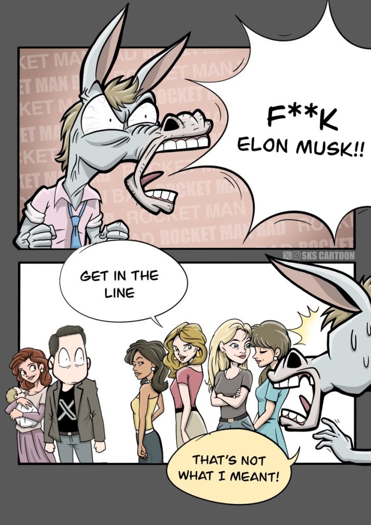 This cartoon was first published by SKS Cartoon. Please follow and subscribe on Twitter and Instagram.RT by @skscartoon: I just figured out how Elon Musk had so many kids!๐