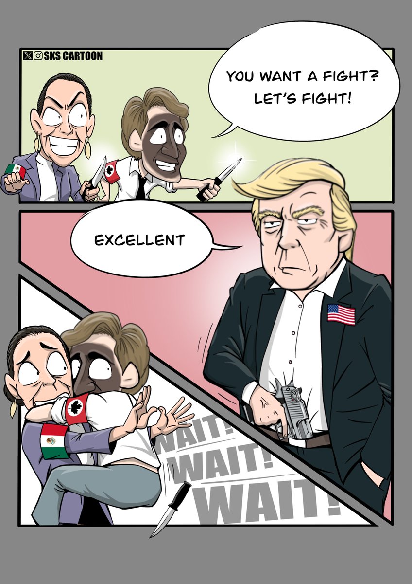 This cartoon was first published by SKS Cartoon. Please follow and subscribe on Twitter and Instagram.When it comes to #TradeWars , don’t bring a Knife to a gun fight…