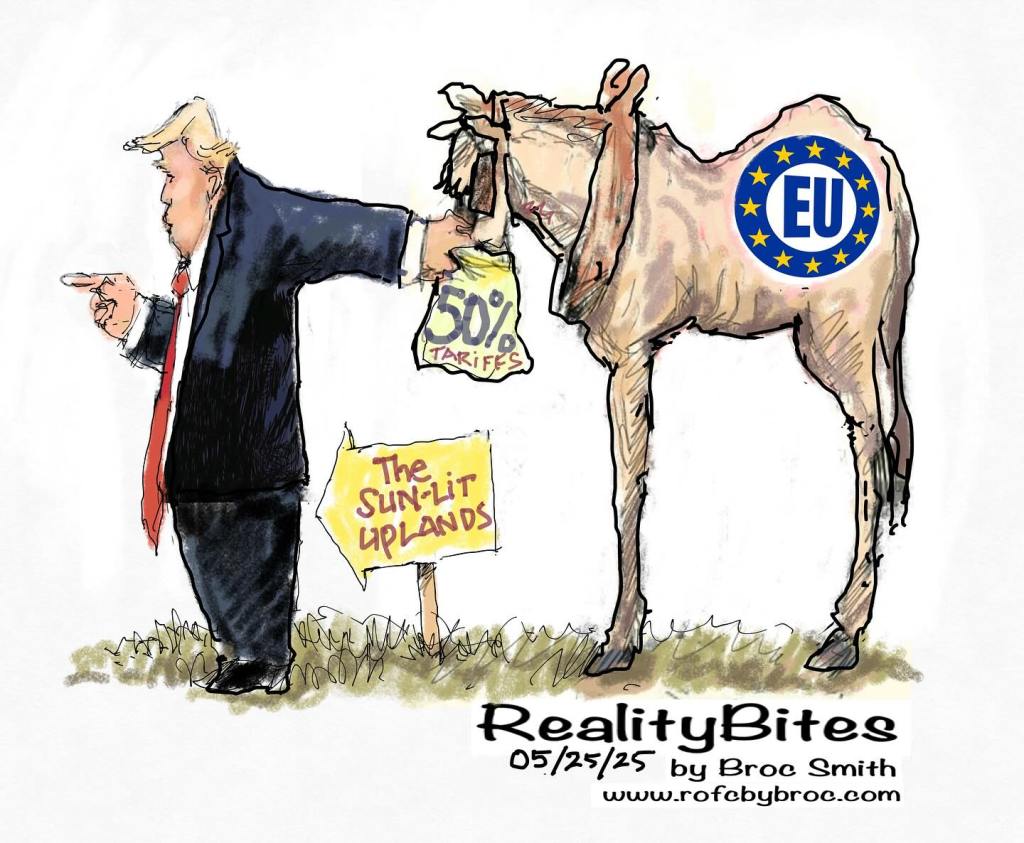 HomeCartoonsThe Sun-Lit UplandsCartoonsThe Sun-Lit UplandsBroc Smith May 25, 2025 86 11 271Broc Smith, https://rofcbybroc.com44SharesFacebook23Twitter12Pinterest3Email2Reddit1Tumblr1WhatsApp2Viber The Sun-Lit Uplands was first published by Broc Smith, and is republished here with his generous permission. Please support his exceptional work. Broc Smith Designer by trade, theme parks and resorts (China 22 years), now drawing political cartoons at https://rofcbybroc.com to support his family. Related PostsCartoonsTwo Too ManyCartoonsThe Name of The GameCartoonsIf You Strike Me Down,PreviousNext1 of 651Leave A Reply Cancel ReplyYour email address will not be published. Required fields are marked *Comment *Name * Email * Save my name, email, and website in this browser for the next time I comment.