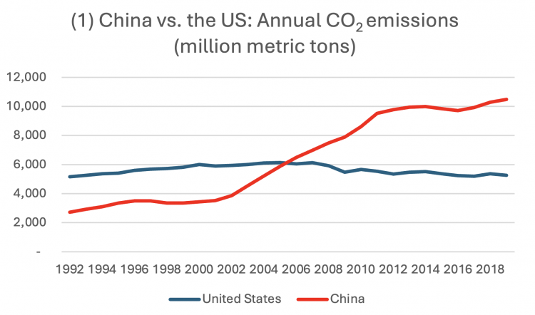 Yet the only year that matters for climate realism is 2006, the year of the great cross-over, when China’s emissions of carbon dioxide overtook those of the United States. This helps explain why China wielded its veto three years later at the Copenhagen climate summit. By 2019, America’s carbon dioxide emissions had fallen by 875 million metric tons from their 2005 peak. Over the same period, China’s rose by 3,511 million metric tons. Twelve years of falling American carbon dioxide emissions were erased by three years of rising Chinese emissions.
