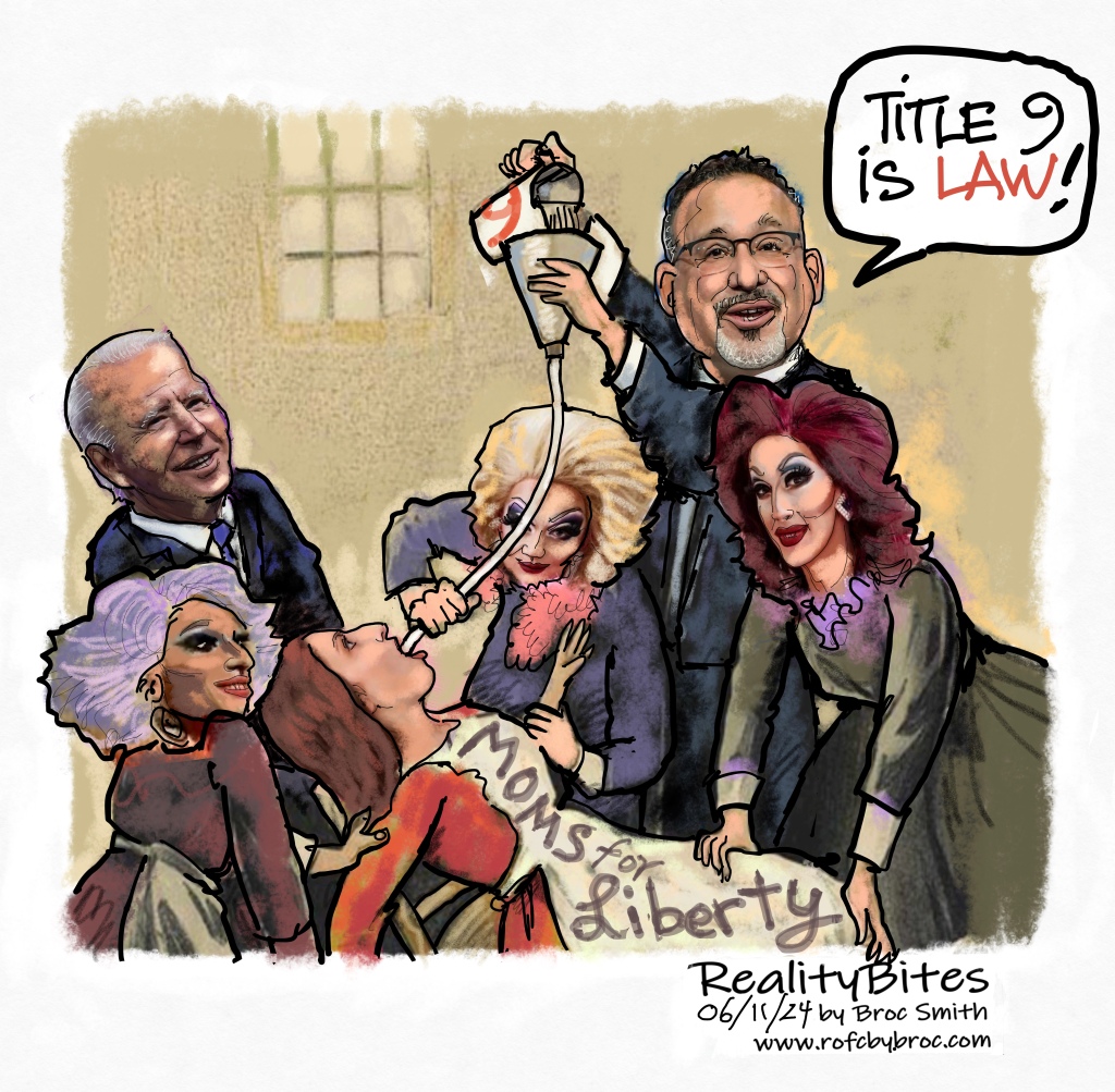 HomeCartoonsTitle 9 HijackedCartoonsTitle 9 HijackedBroc Smith June 9, 2024 87 11 283Broc Smith, https://rofcbybroc.com46SharesFacebook24Twitter12Pinterest3Email3Reddit1Tumblr1WhatsApp2Viber Title 9 Hijacked was first published by Broc Smith, and is republished here with his generous permission. Please support his exceptional work. Broc Smith Designer by trade, theme parks and resorts (China 22 years), now drawing political cartoons at https://rofcbybroc.com to support his family. Related PostsCartoonsTwo Too ManyCartoonsSenate GrumblingsCartoonsFamilies At RiskPreviousNext1 of 656Leave A Reply Cancel ReplyYour email address will not be published. Required fields are marked *Comment *Name * Email * Save my name, email, and website in this browser for the next time I comment.