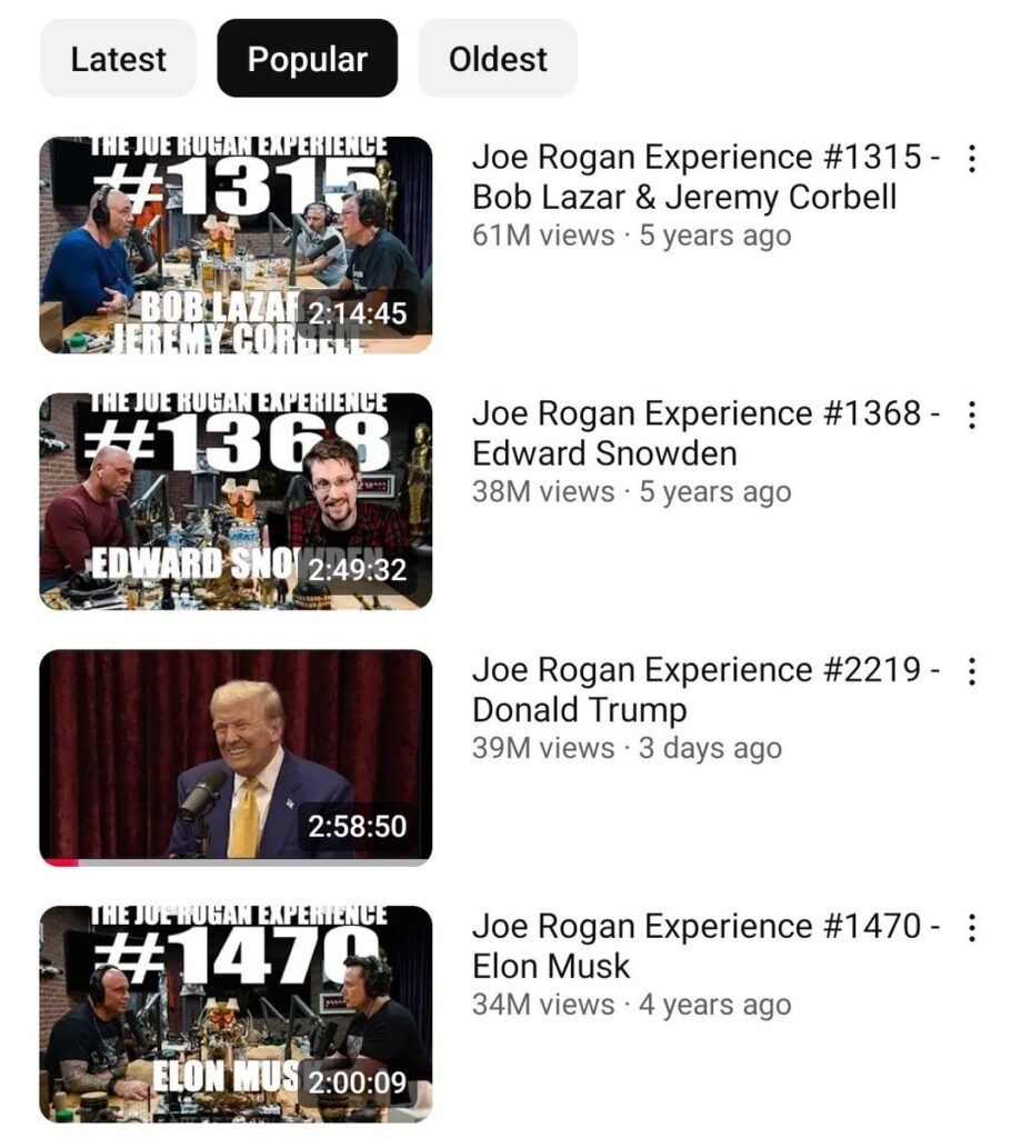 Trump/Rogan episode is now the 2nd most watched episode on JRE, and it only took 3 days to achieve that.