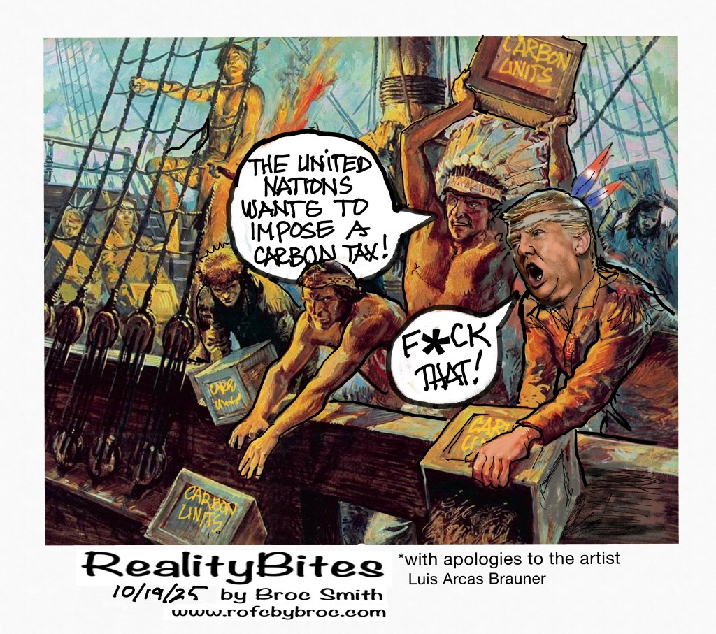 HomeCartoonsUN Imposed Carbon TaxCartoonsUN Imposed Carbon TaxBroc Smith October 18, 2025 86 11 271Broc Smith, https://rofcbybroc.com44SharesFacebook23Twitter12Pinterest3Email2Reddit1Tumblr1WhatsApp2Viber UN Imposed Carbon Tax was first published by Broc Smith, and is republished here with his generous permission. Please support his exceptional work. Broc Smith Designer by trade, theme parks and resorts (China 22 years), now drawing political cartoons at https://rofcbybroc.com to support his family. Related PostsCartoonsTwo Too ManyCartoonsThe Way Things are GoingCartoonsFamilies At RiskPreviousNext1 of 653Leave A Reply Cancel ReplyYour email address will not be published. Required fields are marked *Comment *Name * Email * Save my name, email, and website in this browser for the next time I comment.