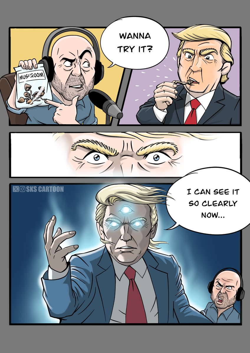 This cartoon was first published by SKS Cartoon. Please follow and subscribe on Twitter and Instagram.When #DonaldTrump goes on #JoeRogan on Friday, this is what I want to see 😆