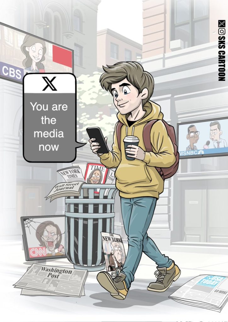 This cartoon was first published by SKS Cartoon. Please follow and subscribe on Twitter and Instagram.You’re the media now